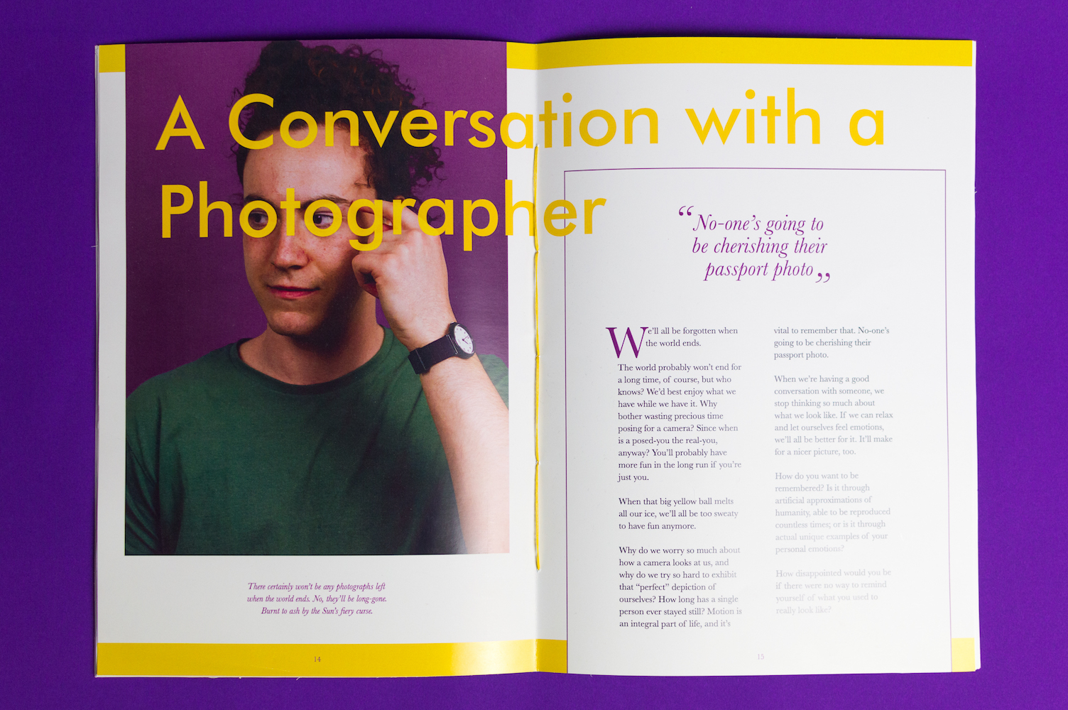 As a response to much of society's overemphasis on the highly curated and 'perfect' self-image, I decided to create something which would attempt to encourage a higher appreciation of the more 'human' side of humanity — an argument for candid photographs in place of traditional posed or 'serious' portraits.