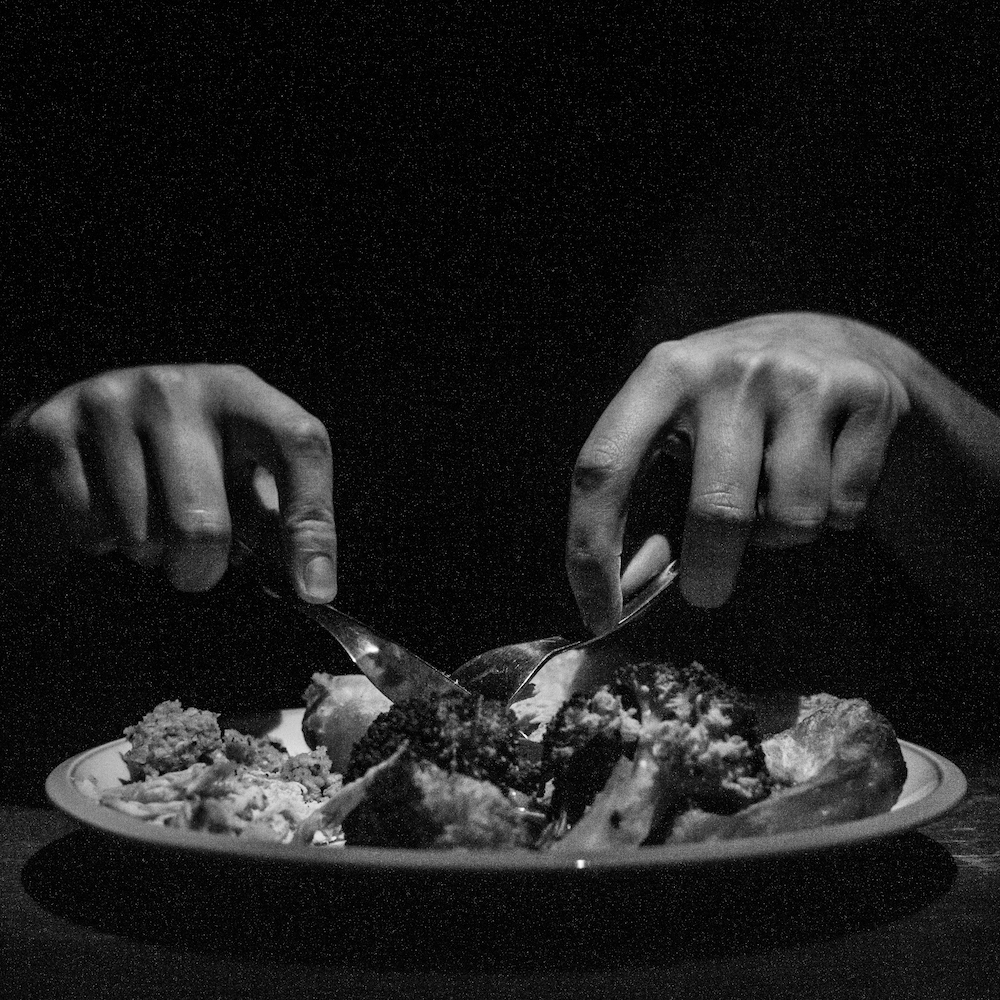 A photography piece for a simple exercise in narrative. Lit by a small hand-torch, and eaten by me.
